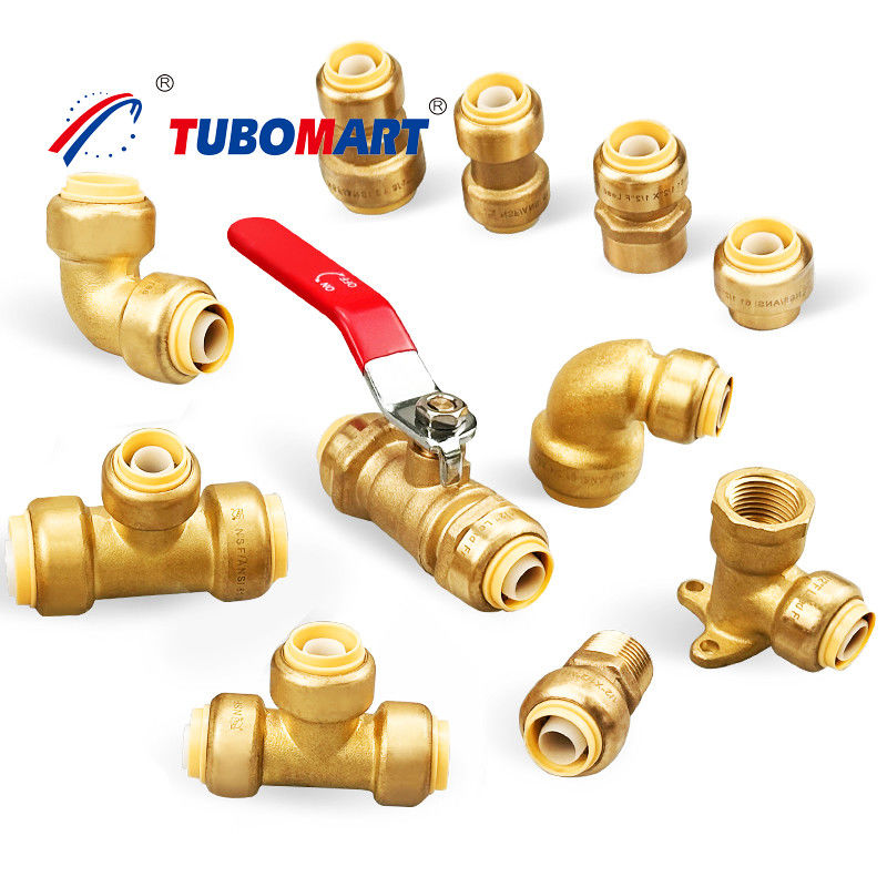 De fittings zijn compatibel met verschillende buismaterialen, zoals koper, PEX, CPVC en PE-RT.TUBOMART-pushfittings zijn in een breed scala aan configuraties verkrijgbaar, met inbegrip van rechte aansluitingen, ellebogen, banden, koppelingen en adapters.
